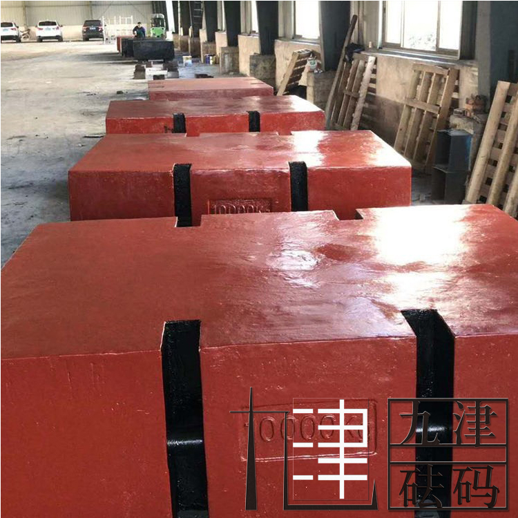 砝碼形狀與使用方式的關(guān)系: 鎖形設(shè)計(jì)形狀,鎖形就是我們古老銅鎖的形狀,整體似正方體,中間有一橫杠,適合用吊機(jī)搬運(yùn)。 矩形設(shè)計(jì)形狀,并要求在砝碼兩側(cè)有可用于裝卸的溝槽和在砝碼底部用叉車(chē)搬運(yùn)的搬運(yùn)溝槽。砝碼的邊和角應(yīng)修圓,表面不應(yīng)有銳邊或銳角和的砂眼,以**止磨損和積灰。 表面情況:為提高砝碼的性和硬度,對(duì)砝碼表面應(yīng)有適當(dāng)?shù)慕饘馘儗踊蛲繉�。平板形砝碼適合用吊機(jī)搬運(yùn),也適合用叉車(chē)搬運(yùn),亦可疊加使用。 圓滾型設(shè)計(jì)形狀:圓滾形砝碼中間為橢圓形,兩邊各有一把手,可兩個(gè)人滾動(dòng),也可用吊機(jī)搬動(dòng)。 圓柱形設(shè)計(jì)形狀:圓柱形就是我們常見(jiàn)的圓柱的那種形狀,砝碼比較高,上端跟鎖形砝碼一樣都有一吊耳,適合用吊機(jī)搬動(dòng)。 10噸鑄鐵砝碼-**直銷(xiāo) 質(zhì)保一年 |